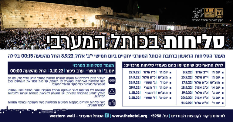 Selichot (Penitential Prayers) at the Western Wall: This year there will be 14 central prayer events