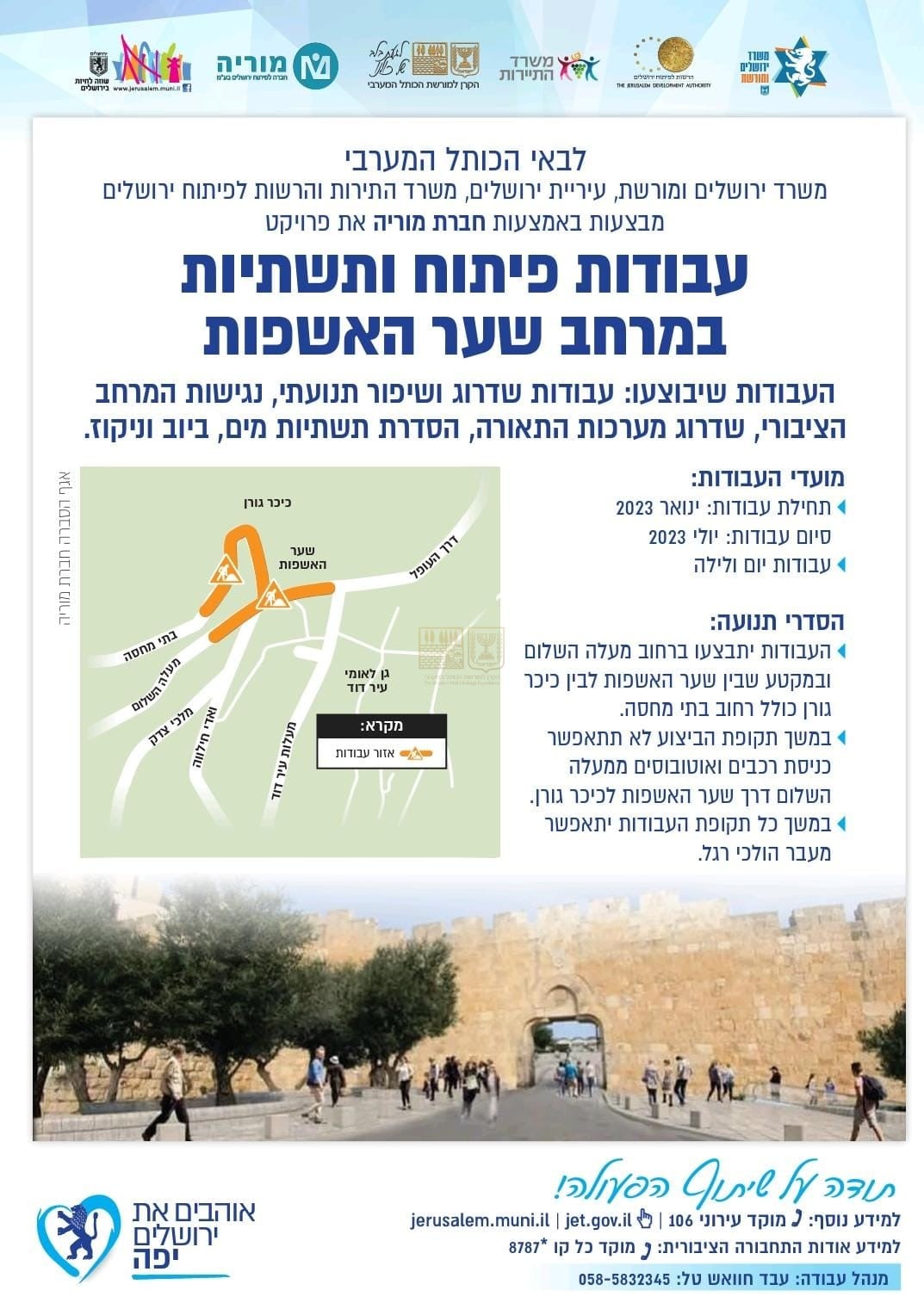 משרד ירושלים ומורשת, עיריית ירושלים, משרד התיירות והרשות לפיתוח ירושלים מבצעות באמצעות חברת מוריה את פרויקט עבודות פיתוח ותשתיות במרחב שער האשפות