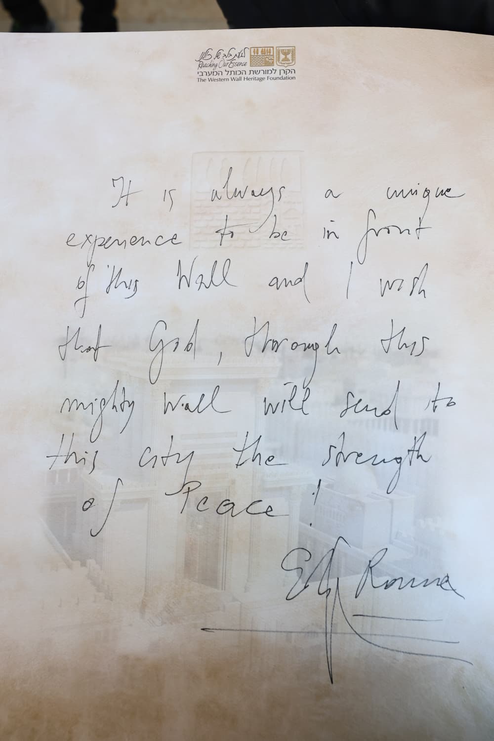 ראש הממשלה האלבני סייר במיצג החדש 'שער השמיים' שנפתח לאחרונה לציבור המבקרים בכותל המערבי, כתב פתק אישי אותו הטמין בין אבני הכותל וחתם את ביקורו בספר המבקרים: "זוהי תמיד חוויה ייחודית לעמוד בפני הכותל הזה, ואני מייחל לכך שאלוקים, דרך הכותל האדיר הזה, יעניק לעיר הזו את עוצמת השלום!"