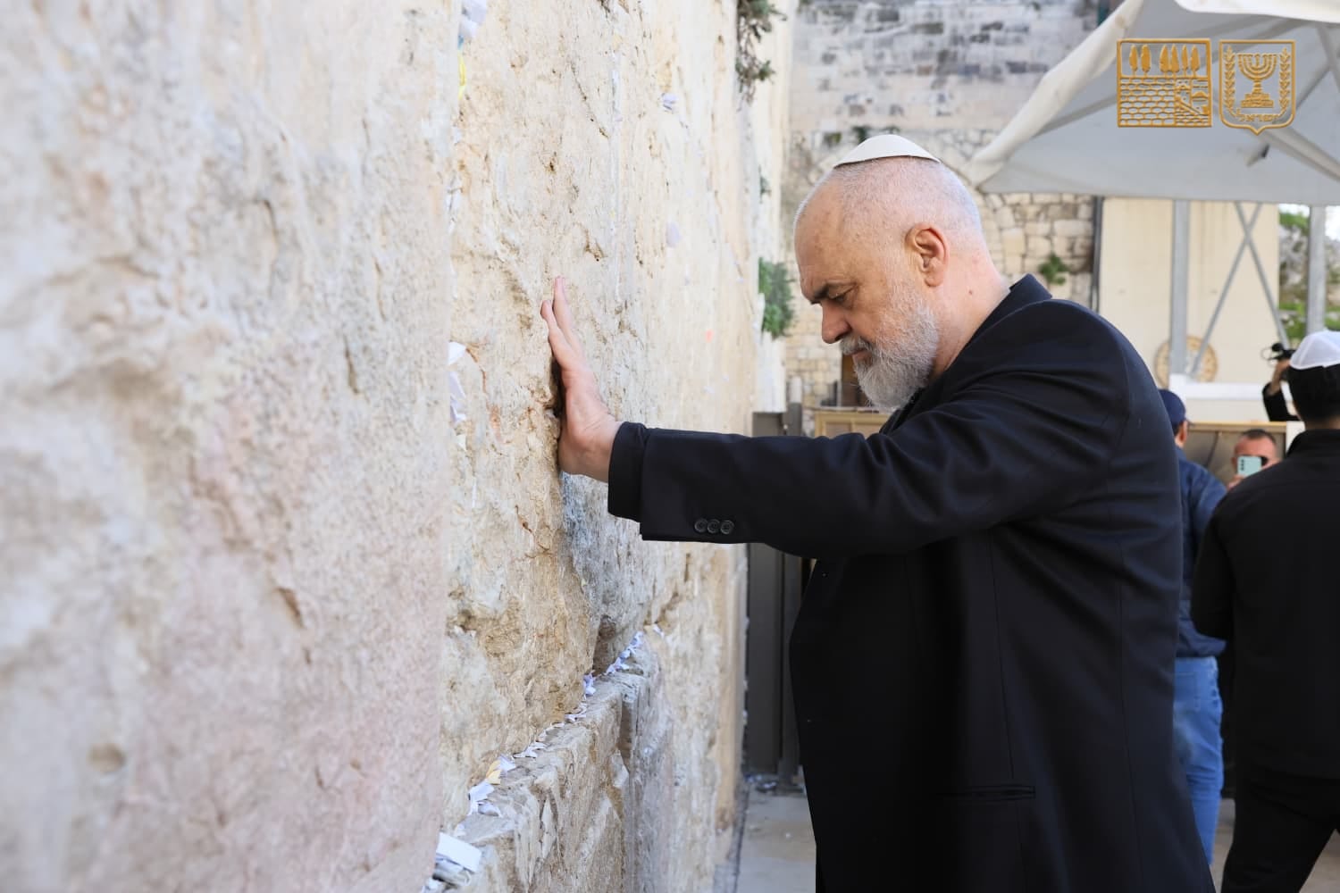 במסגרת ביקורו המדיני בישראל כחלק מהשתתפותו במאבק באנטישמיות הגיע הבוקר (ב') ראש ממשלת אלבניה מר אדי רמה ורעייתו לביקור ותפילה בכותל המערבי.