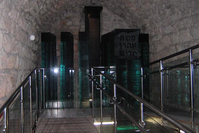 במבואה לחלל הראשון ניצב גוש זכוכית רחב ידיים, עליו חקוקים שמותיהם של אדם הראשון, נוח וצאצאיהם. בתוך החדר, עומדים זקופים אחד ליד השני עמודי האומה: האבות, האימהות ושנים-עשר השבטים.