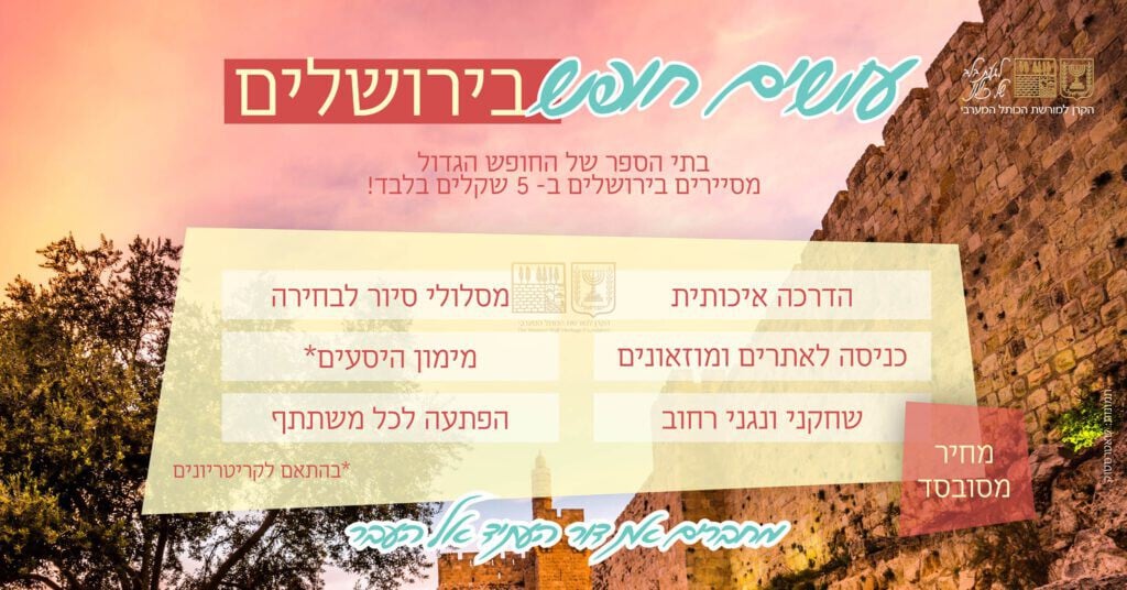 עושים חופש בירושלים ב- 5 ש"ח לתלמיד בתי הספר של החופש הגדול, אגפי נוער וקהילה – זה בשבילכם!